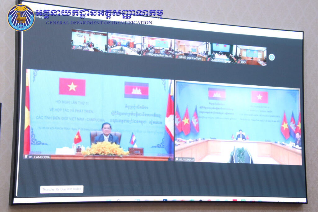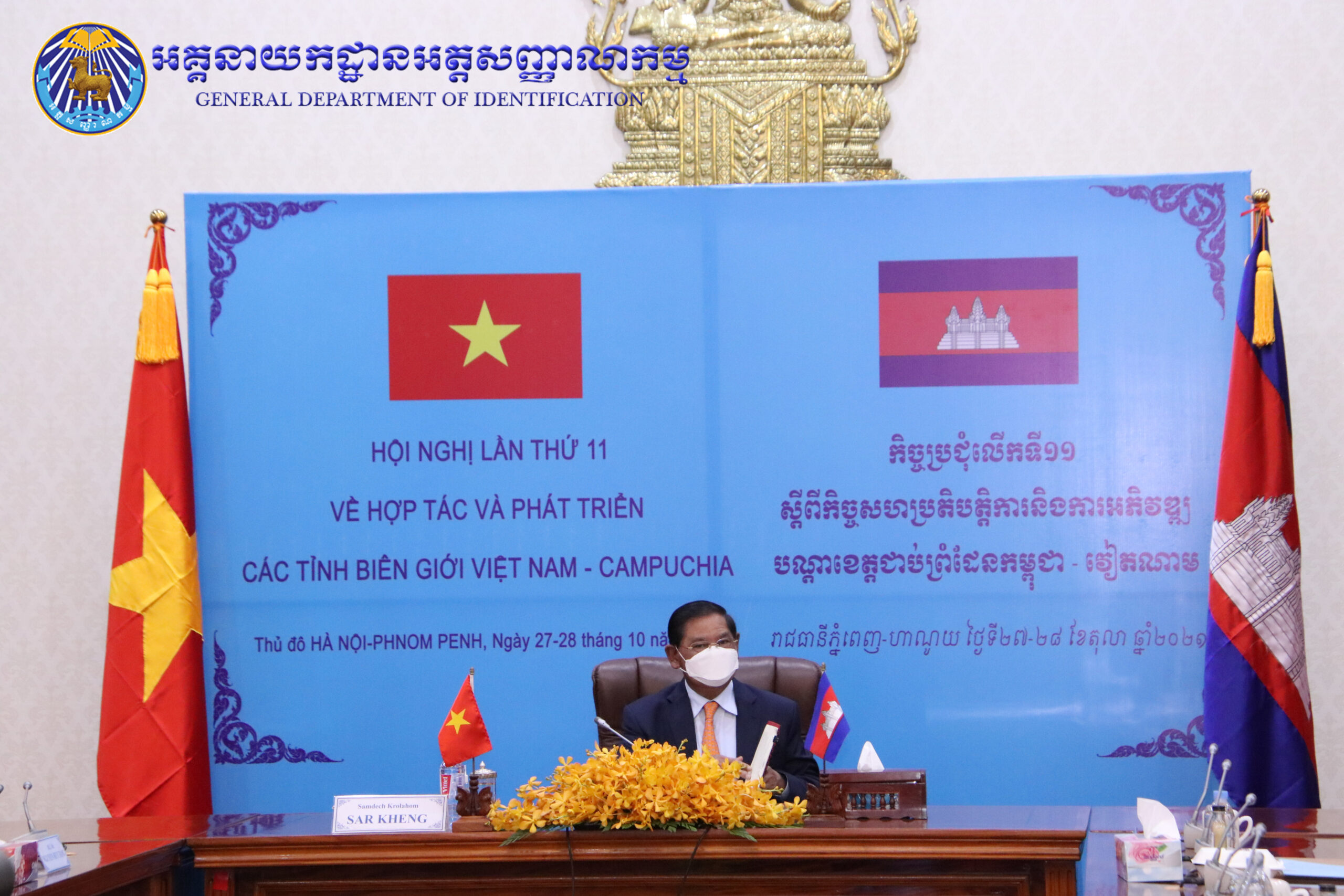 ទីស្ដីការក្រសួងមហាផ្ទៃ៖ នៅថ្ងៃព្រហស្បតិ៍ ៧រោច ខែអស្សុជ ឆ្នាំឆ្លូវ ត្រីស័ក ព.ស ២៥៦៥ ត្រូវនឹងថ្ងៃទី២៨ ខែតុលា ឆ្នាំ២០២១ ឯកឧត្តម នាយឧត្តមសេនីយ៍ កង សុខន អគ្គនាយក នៃអគ្គនាយកដ្ឋានអត្តសញ្ញាណកម្ម បានអញ្ជើញចូលរួមក្នុងកិច្ចប្រជុំលើកទី១១ ស្ដីពីកិច្ចសហប្រតិបត្តិការ និងការអភិវឌ្ឍបណ្តាខេត្តជាប់ព្រំដែនកម្ពុជា-វៀតណាម ក្រោមអធិបតីភាពដ៏ខ្ពង់ខ្ពស់សហប្រធានកិច្ចប្រជុំ សម្តេចក្រឡាហោម ស ខេង ឧបនាយករដ្ឋមន្រ្តី រដ្ឋមន្រ្តីក្រសួងមហាផ្ទៃ នៃព្រះរាជាណាចក្រកម្ពុជា និងឯកឧត្តម ផាម ប៊ិញមីញ ឧបនាយករដ្ឋមន្រ្តីប្រចាំការ នៃសាធារណរដ្ឋសង្គមនិយមវៀតណាម តាមប្រព័ន្ធវីដេអូ (កម្មវិធី ZOOM)។ ក្នុងកិច្ចប្រជុំនេះក៏មានការចូលរួមពី ឯកឧត្តម រដ្ឋលេខាធិការ អនុរដ្ឋលេខាធិការ ឯកឧត្តម សន្តិបណ្ឌិត អគ្គស្នងការនគរបាលជាតិ ឯកឧត្តម អភិបាលនៃគណៈអភិបាលខេត្តជាប់ព្រំដែន កម្ពុជា-វៀតណាម ព្រមទាំងឯកឧត្តម អគ្គនាយក អគ្គនាយករង តំណាងអគ្គនាយកដ្ឋាននានាចំណុះក្រសួងមហាផ្ទៃ និងអង្គភាពជំនាញពាក់ព័ន្ធជាច្រើនផងដែរ៕