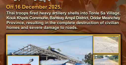 កាលពីថ្ងៃទី១៦ ខែធ្នូ ឆ្នាំ២០២៥ ទាហានថៃបានផ្លោងគ្រាប់ធំៗ ចូលទៅក្នុងភូមិទន្លេស ឃុំគោកខ្ពស់ ស្រុកបន្ទាយអំពិល ខេត្តឧត្ដរមានជ័យ បណ្ដាលឱ្យខូចផ្ទះប្រជ...