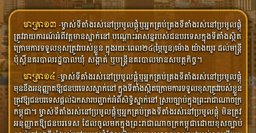 អនុក្រឹត្យ ស្តីពី ការគ្រប់គ្រងសន្តិសុខសុវត្ថិភាពតាមទីតាំងរស់នៅប្រមូលផ្តុំ .... រៀបចំដោយក្រុមអ្នកនាំពាក្យក្រសួងមហាផ្ទៃ