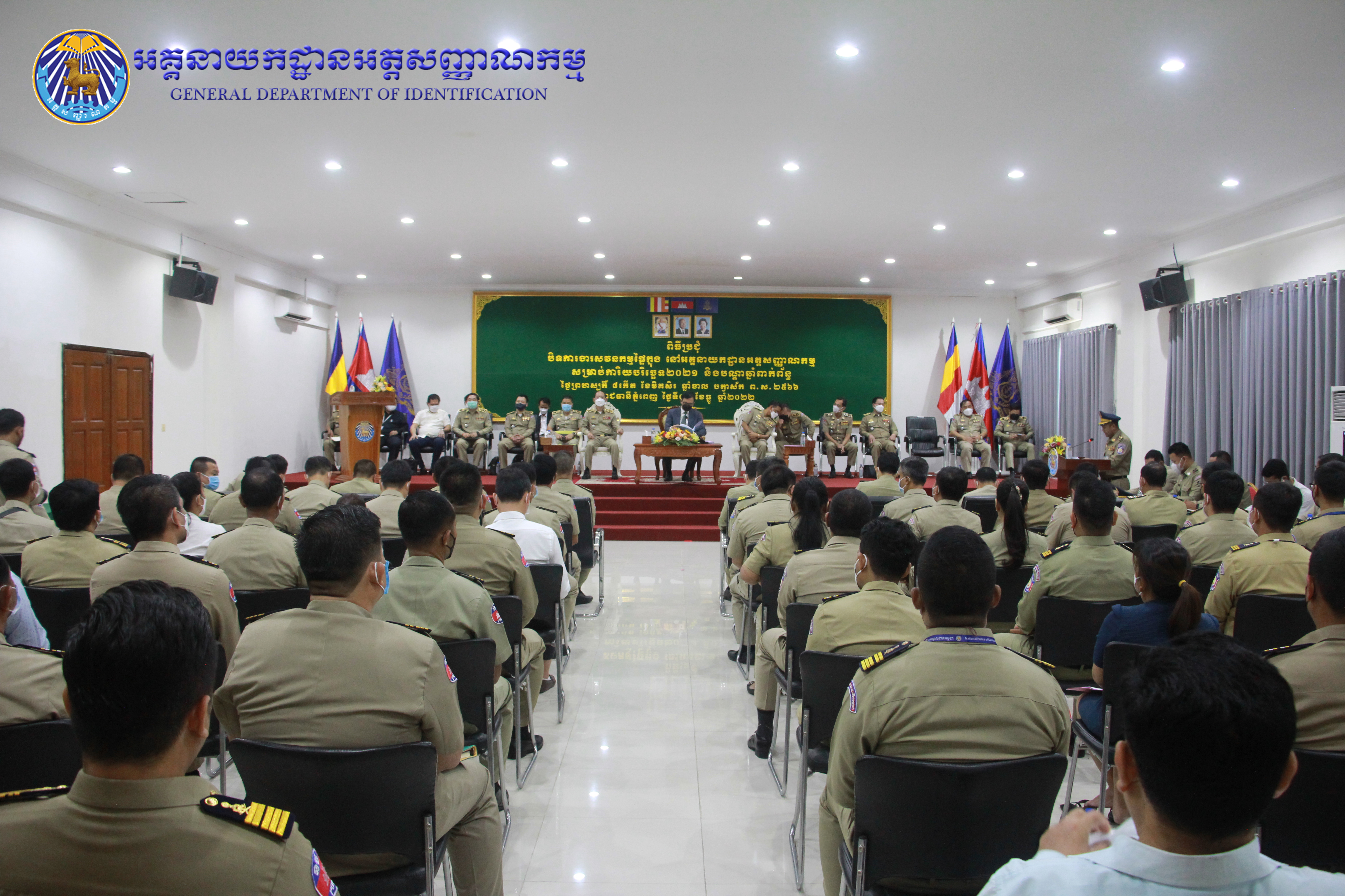 អគ្គនាយកដ្ឋានអត្តសញ្ញាណកម្ម៖ នៅរសៀលថ្ងៃព្រហស្បតិ៍ ៨កើត ខែមិគសិរ ឆ្នាំខាល ចត្វាស័ក ព.ស ២៥៦៦ ត្រូវនឹងថ្ងៃទី០១ ខែធ្នូ ឆ្នាំ២០២២ ឯកឧត្តម នាយឧត្តមសេនីយ៍ កង សុខន អគ្គនាយក នៃអគ្គនាយកដ្ឋានអត្តសញ្ញាណកម្ម បានអញ្ជើញចូលរួមក្នុងពិធីបិទកិច្ចប្រជុំសវនកម្មផ្ទៃក្នុង សម្រាប់ការិយបរិច្ឆេទ២០២១ និងបណ្តាឆ្នាំពាក់ព័ន្ធ នៅអគ្គនាយកដ្ឋានអត្តសញ្ញាណកម្ម ក្រោមអធិបតីភាព ឯកឧត្តម ឡាំ ជា រដ្ឋលេខាធិការ ក្រសួងមហាផ្ទៃ។ ក្នុងពិធីនេះក៏មានការអញ្ជើញចូលរួមពី ឯកឧត្តម ឧត្តមសេនីយ៍ឯក ងួន ស្រេង អគ្គនាយក នៃអគ្គនាយកដ្ឋានសវនកម្មផ្ទៃក្នុង និងប្រតិភូអមដំណើរ ឯកឧត្តម អគ្គនាយករង លោកប្រធាននាយកដ្ឋានទាំង០៧ ព្រមទាំងលោក លោកស្រីអនុប្រធាននាយកដ្ឋាន លោក លោកស្រីនាយ/ប្រធានការិយាល័យ និងប្រធានសាខា ចំណុះនាយកដ្ឋានទាំង០៧ នៃអគ្គនាយកដ្ឋានអត្តសញ្ញាណកម្មជាច្រើនផងដែរ៕