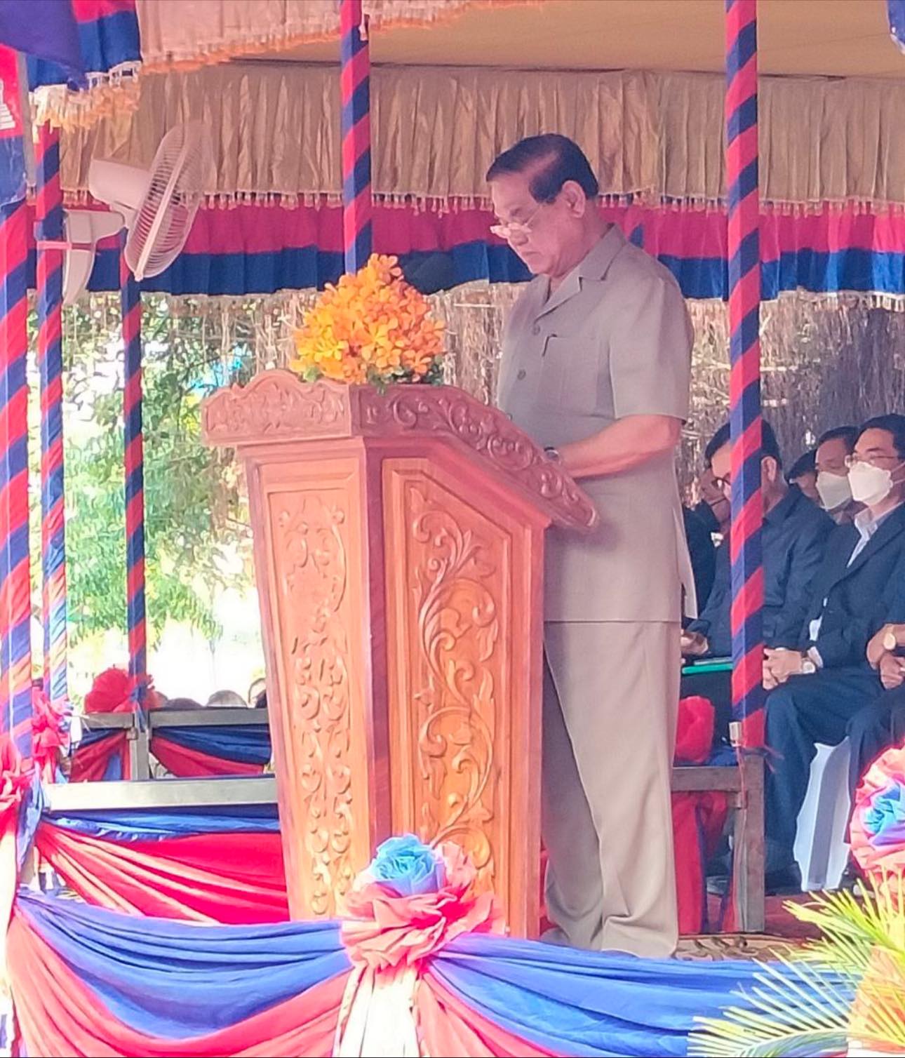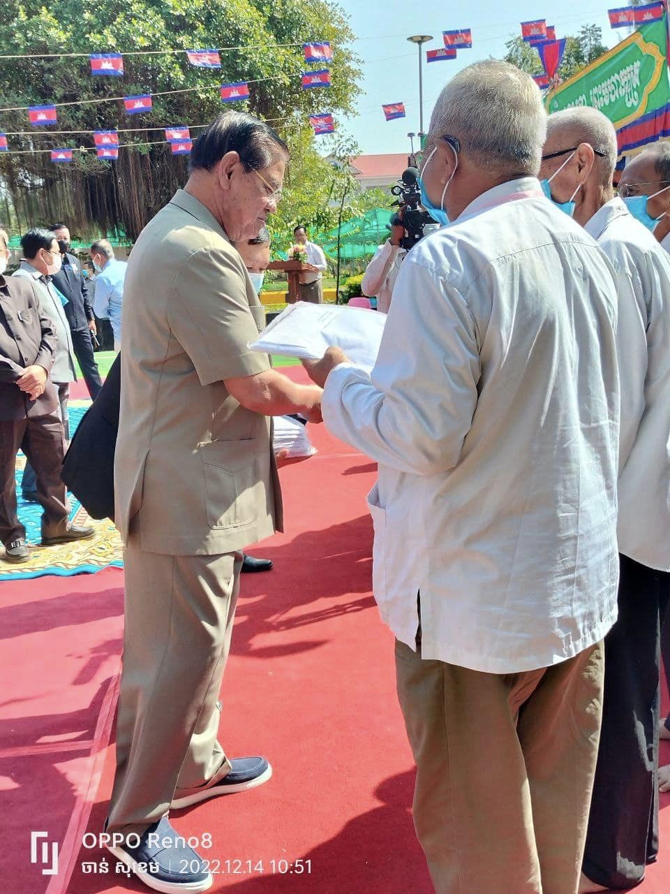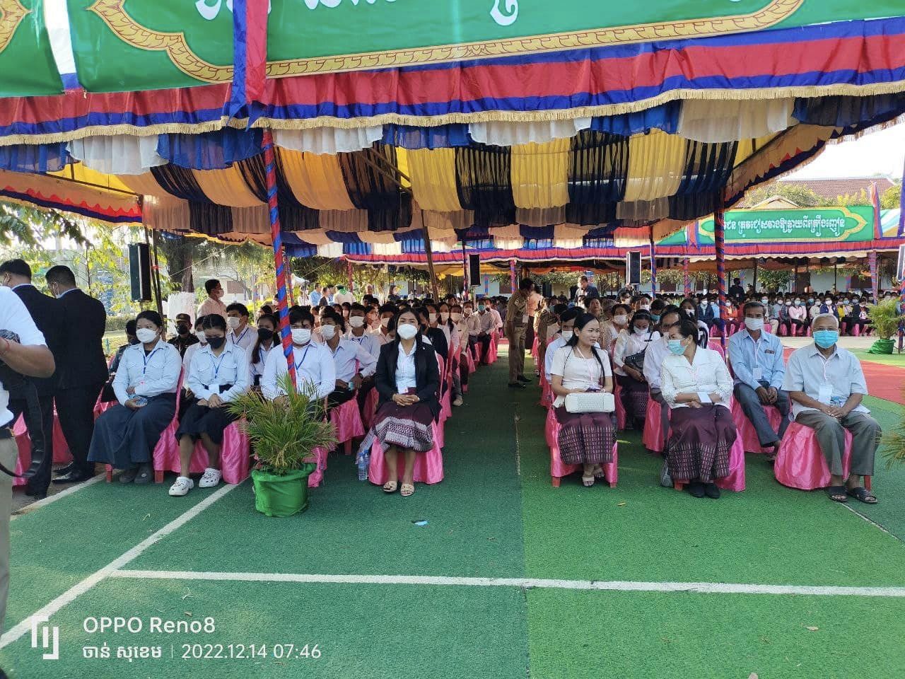 ខេត្តបាត់ដំបង៖ នៅថ្ងៃព្រហស្បតិ៍ ៧រោច ខែមិគសិរ ឆ្នាំខាល ចត្វាស័ក ព.ស ២៥៦៦ ត្រូវនឹងថ្ងៃទី១៥ ខែធ្នូ ឆ្នាំ២០២២ ឯកឧត្តម ឧត្តមសេនីយ៍ឯក មាស ស៊ីផាន អគ្គនាយករង តំណាង ឯកឧត្តម នាយឧត្តមសេនីយ៍ កង សុខន អគ្គនាយក នៃអគ្គនាយកដ្ឋានអត្តសញ្ញាណកម្ម បានអញ្ជើញចូលរួមក្នុងពិធីសំណេះសំណាលជាមួយប្រជាពលរដ្ឋ គណៈកម្មការទ្រទ្រង់សាលា គណនាយក លោកគ្រូ អ្នកគ្រូសិស្សានុសិស្ស និងប្រគល់សមិទ្ធផលនានា នៃវិទ្យាល័យបវេល និងពិធីបញ្ចុះបឋមសិលា ក្រុងពលីសាងសង់ សួនសម្តេចក្រឡាហោម វិមានឯករាជ្យ ព្រមទាំងផ្សាររាត្រី ស្ថិតនៅភូមិកម្មករ សង្កាត់ស្វាយប៉ោ ក្រុងបាត់ដំបង ខេត្តបាត់ដំបង ក្រោមអធិបតីភាពដ៏ខ្ពង់ខ្ពស់ សម្ដេចក្រឡាហោម ស ខេង ឧបនាយករដ្ឋមន្ត្រី រដ្ឋមន្ត្រីក្រសួងមហាផ្ទៃ។ ក្នុងពិធីសំណេះសំណាលនេះក៏មានការអញ្ជើញចូលរួម ឯកឧត្តម រដ្ឋលេខាធិការ អនុរដ្ឋលេខាធិការ ឯកឧត្តម អគ្គនាយក អគ្គនាយករង ឯកឧត្តម អភិបាល នៃគណៈអភិបាលខេត្ត លោកស្នងការខេត្ត និងមន្ត្រីរាជការដែលពាក់ព័ន្ធជាច្រើនផងដែរ៕