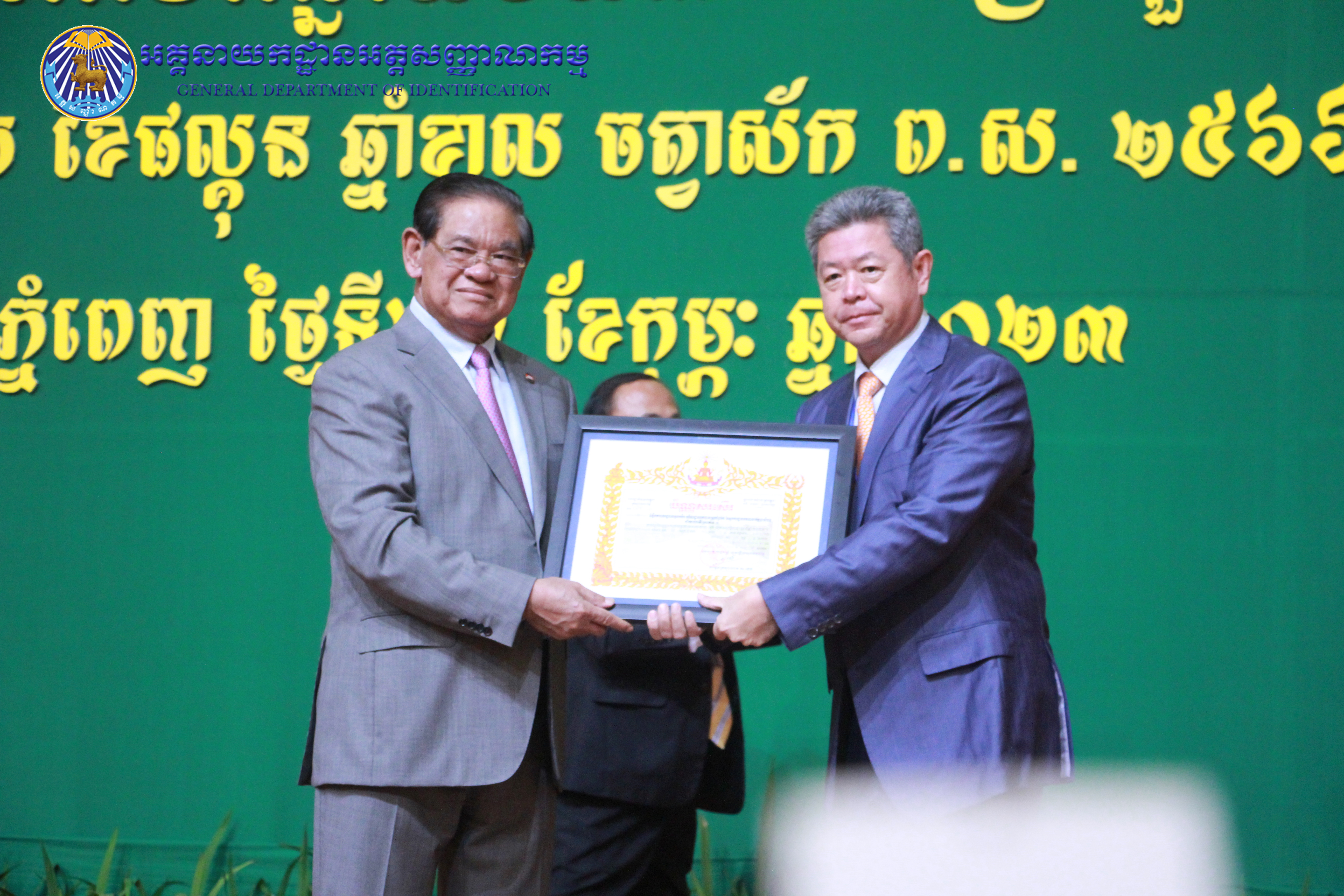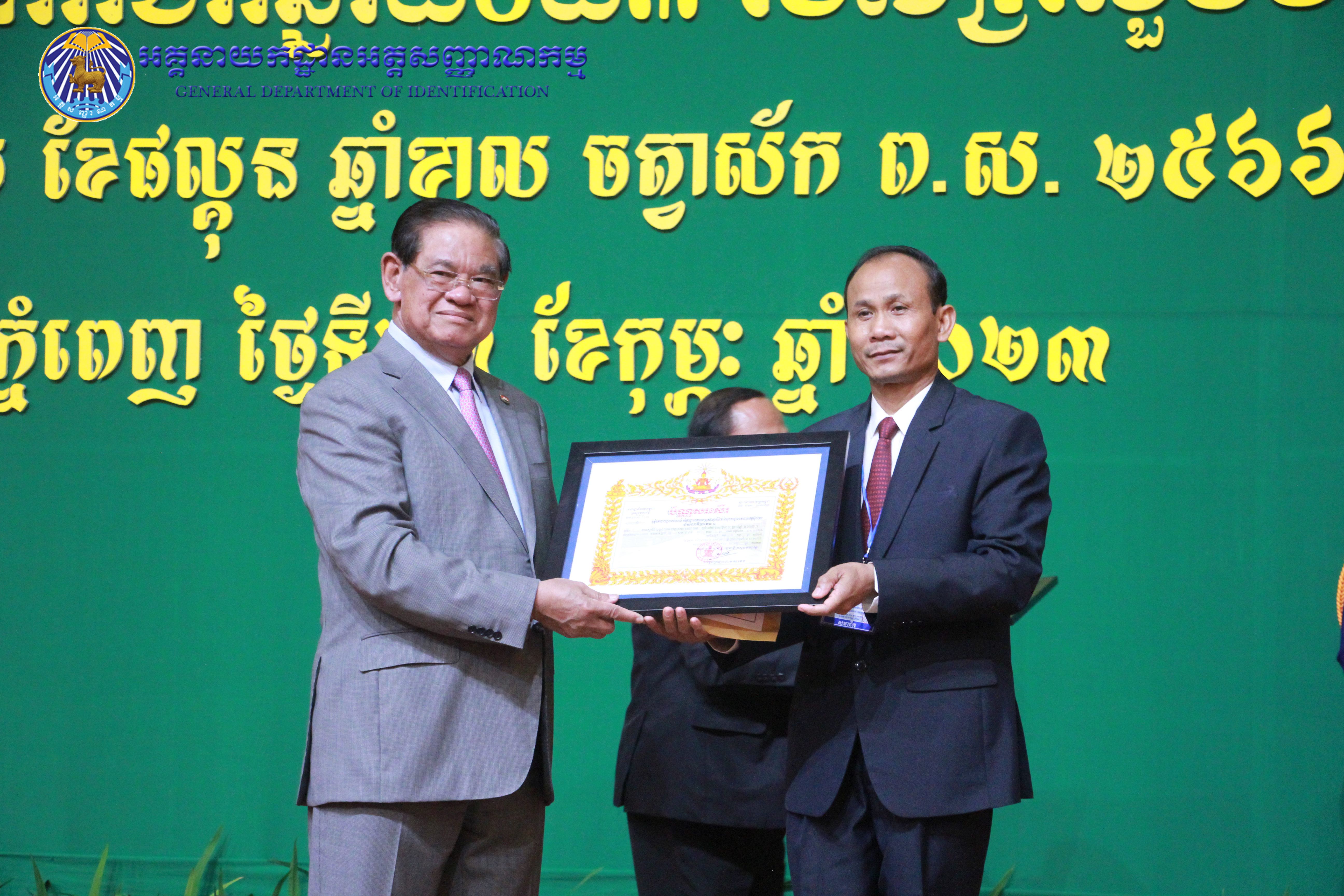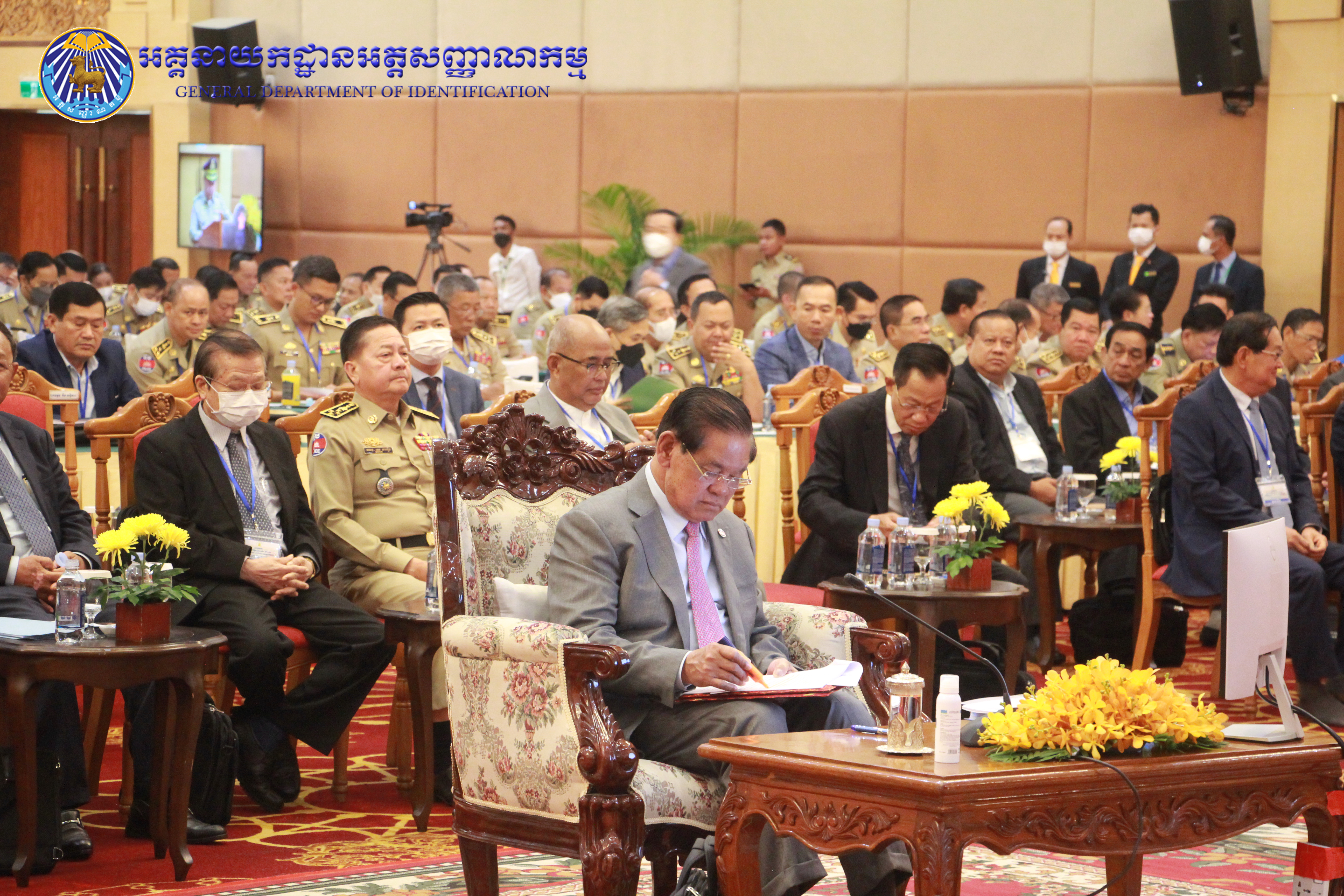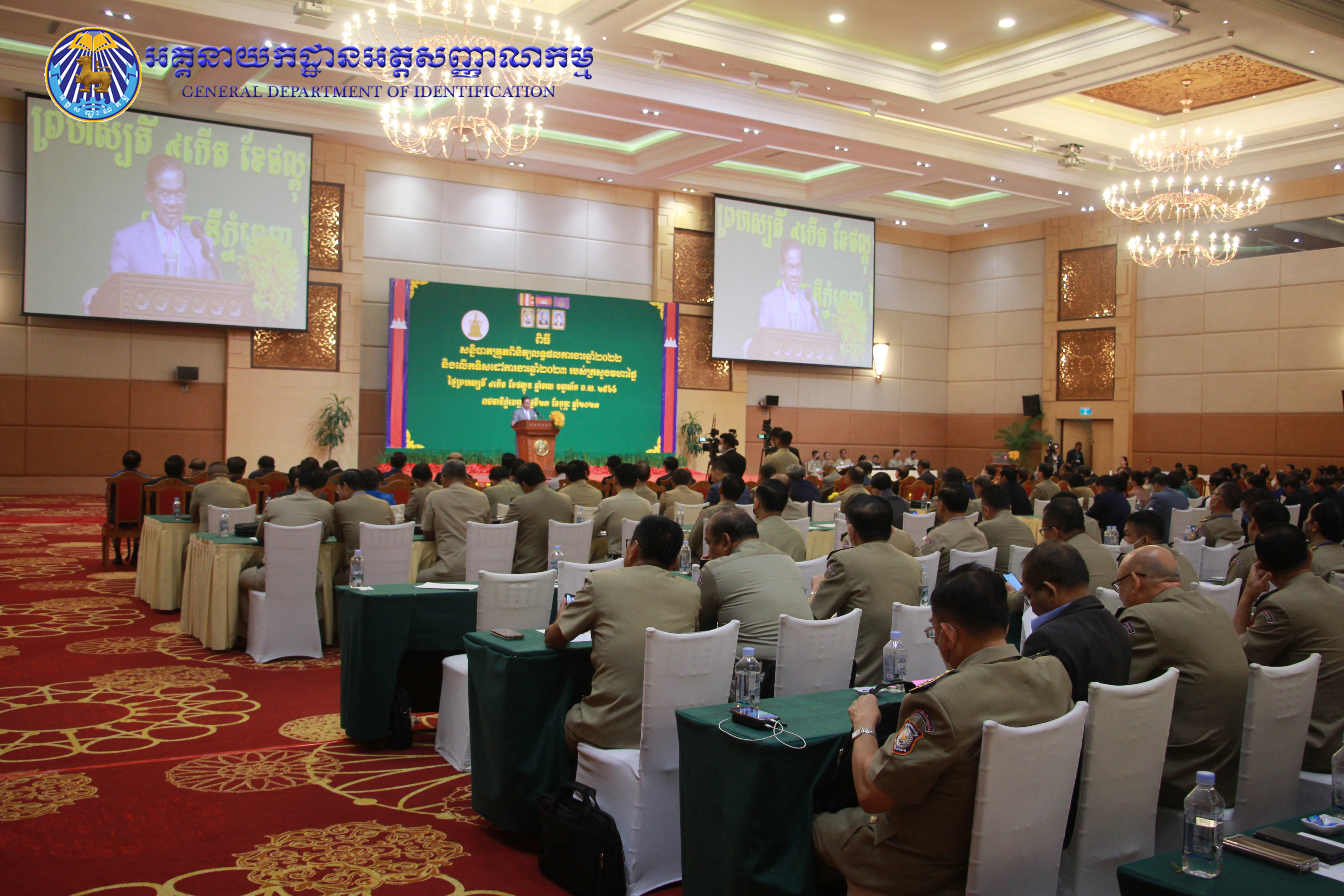 រាជធានីភ្នំពេញ៖ នៅព្រឹកថ្ងៃព្រហស្បតិ៍ ៤កើត ខែផល្គុន ឆ្នាំខាល ចត្វាស័ក ព.ស ២៥៦៦ ត្រូវនឹងថ្ងៃទី២៣ ខែកុម្ភៈ ឆ្នាំ២០២៣ នៅសាលប្រជុំសណ្ឋាគារសុខាភ្នំពេញ ឯកឧត្តម នាយឧត្តមសេនីយ៍ កង សុខន អគ្គនាយក នៃអគ្គនាយកដ្ឋានអត្តសញ្ញាណកម្ម អមដំណើរដោយ ឯកឧត្តម លោកជំទាវ អគ្គនាយករង និងថ្នាក់ដឹកនាំចំណុះអគ្គនាយកដ្ឋាន បានអញ្ជើញចូលរួមក្នុងពិធីបូកសរុបលទ្ធផល នៃអង្គសន្និបាតត្រួតពិនិត្យលទ្ធផលការងារឆ្នាំ២០២២ និងផ្តល់អនុសាសន៍ផ្តាំផ្ញើលើកទិសដៅការងារជូនដល់ថ្នាក់ដឹកនាំក្រសួងមហាផ្ទៃ សម្រាប់អនុវត្តបន្តក្នុងឆ្នាំ២០២៣ ក្រោមអធិបតីភាពដ៏ខ្ពង់ខ្ពស់ សម្តេចក្រឡាហោម ស ខេង ឧបនាយករដ្ឋមន្រ្តី រដ្ឋមន្រ្តីក្រសួងមហាផ្ទៃ។