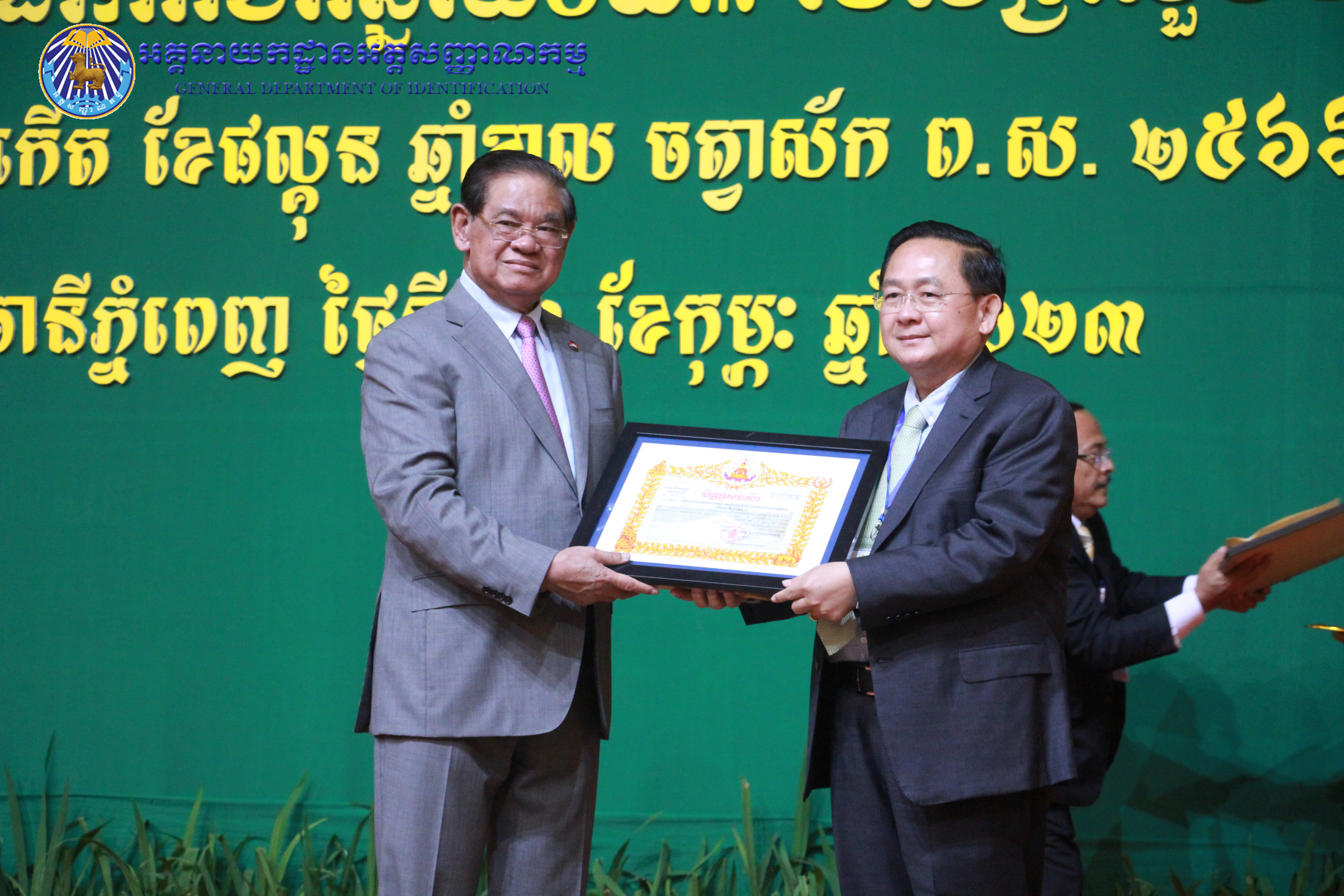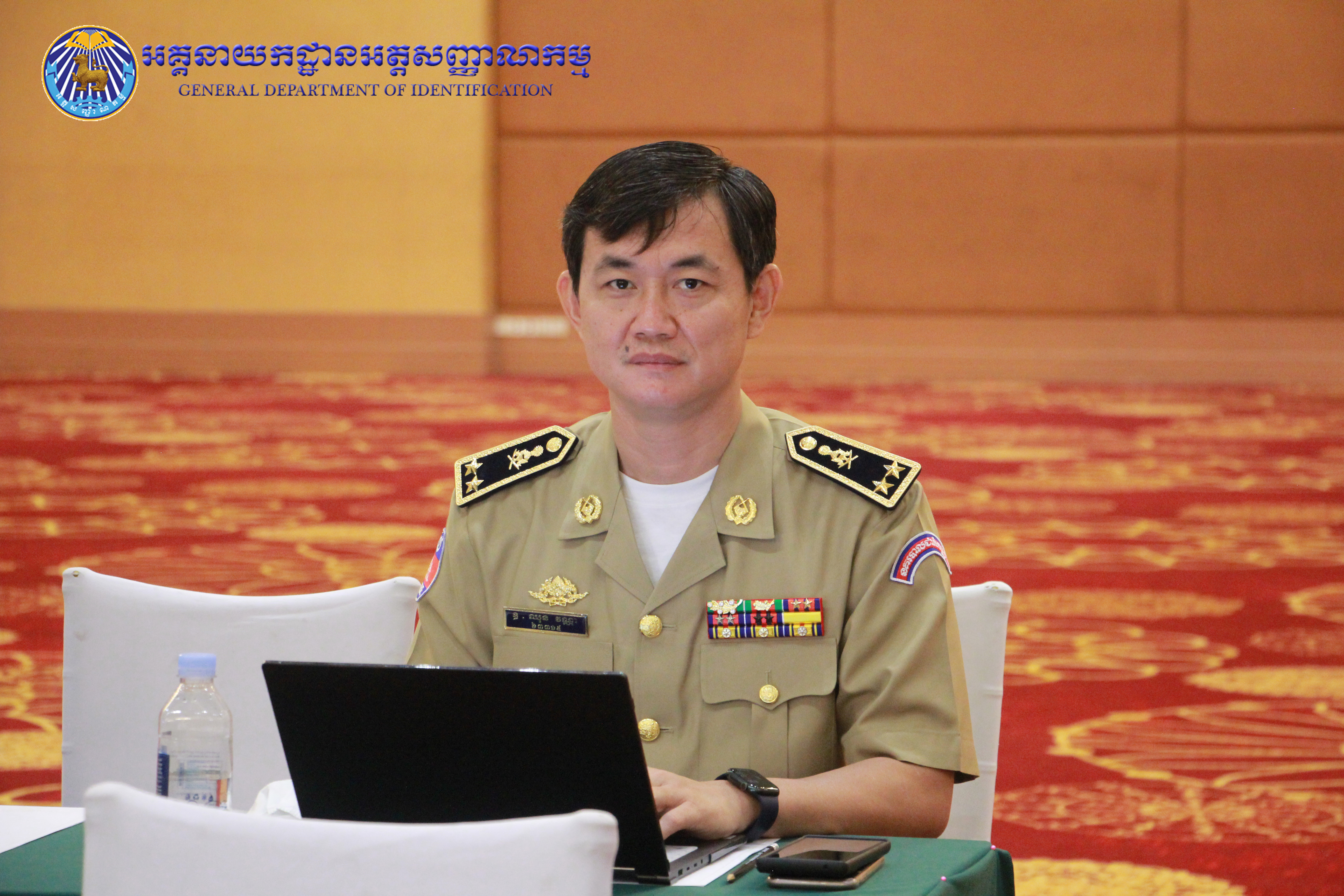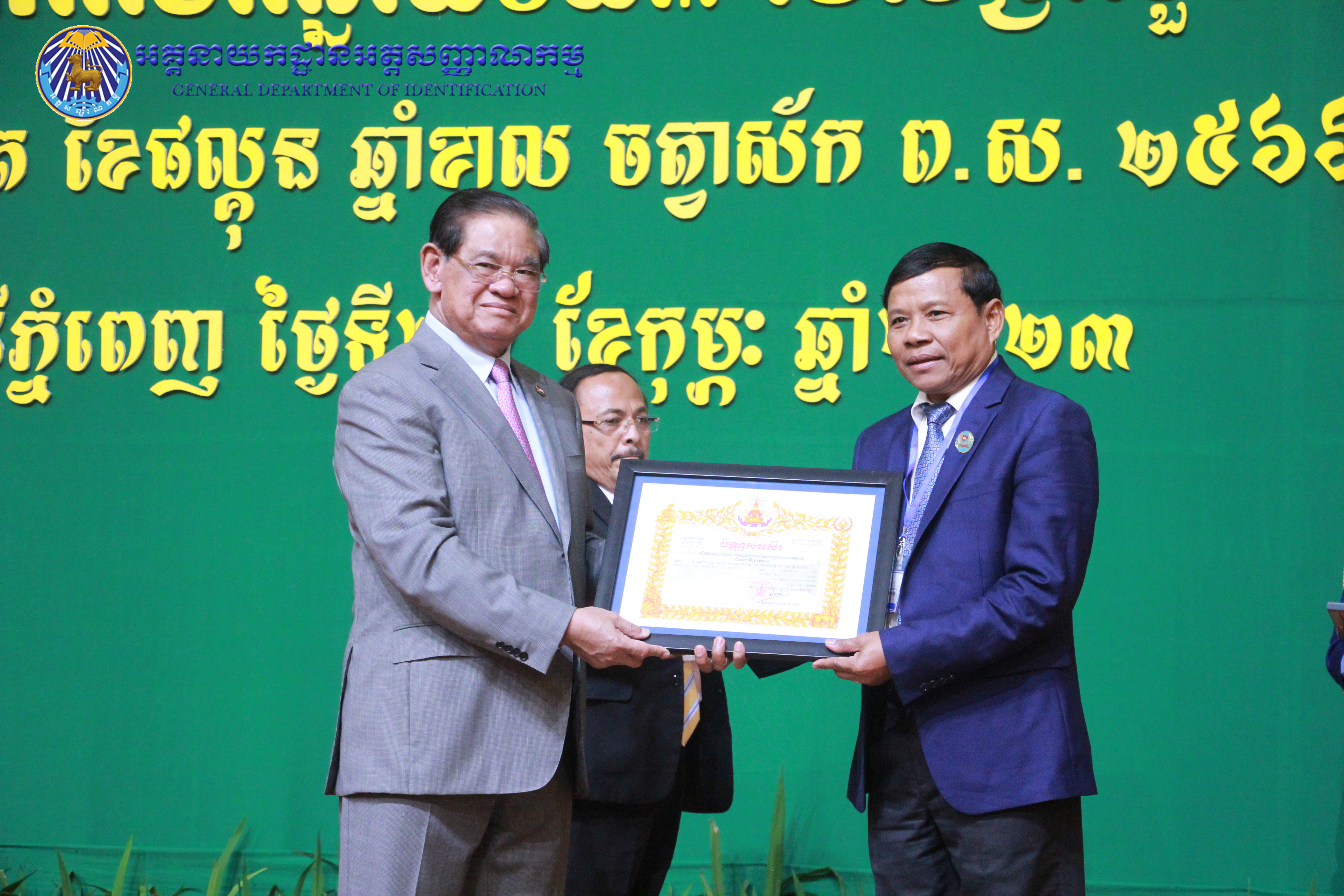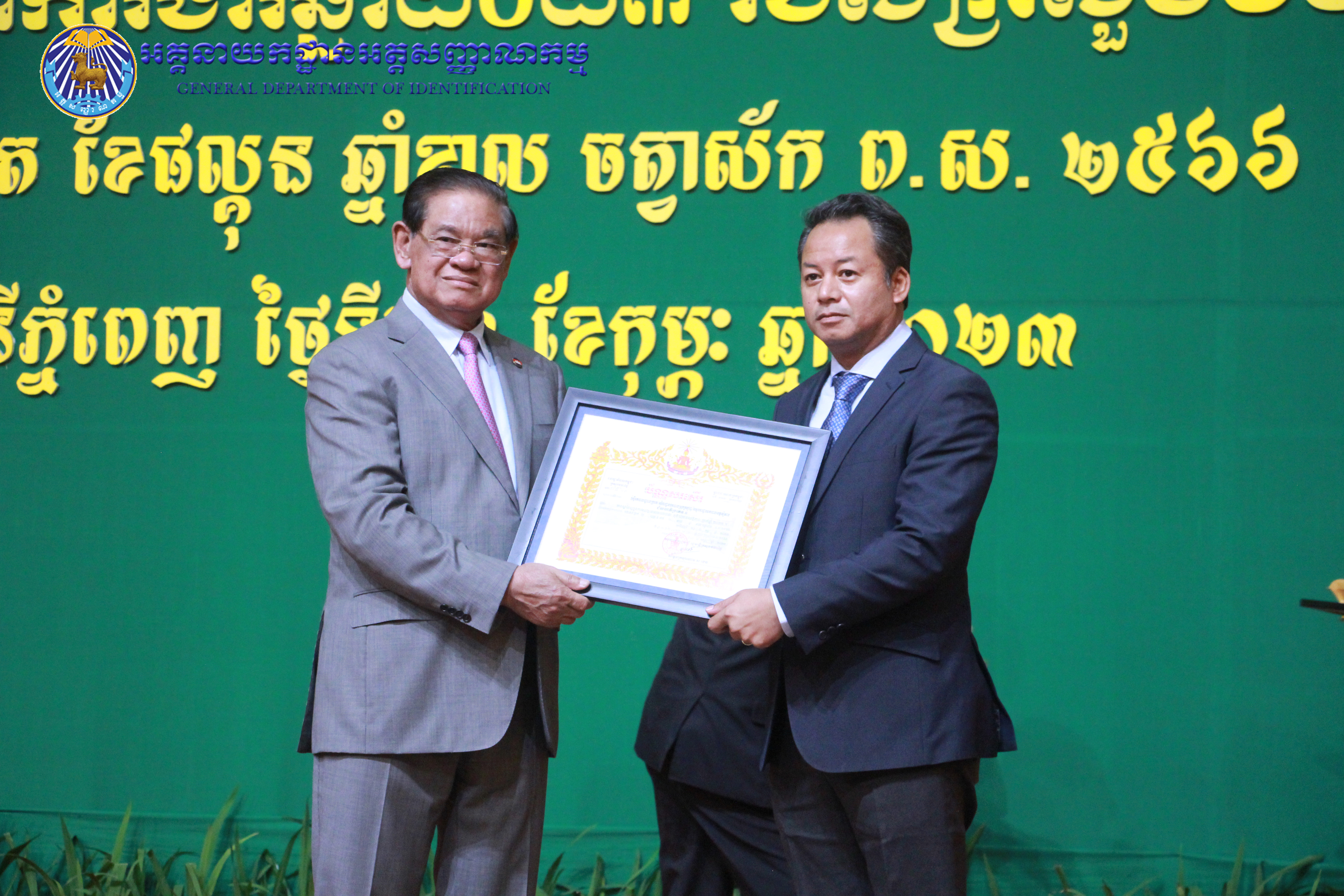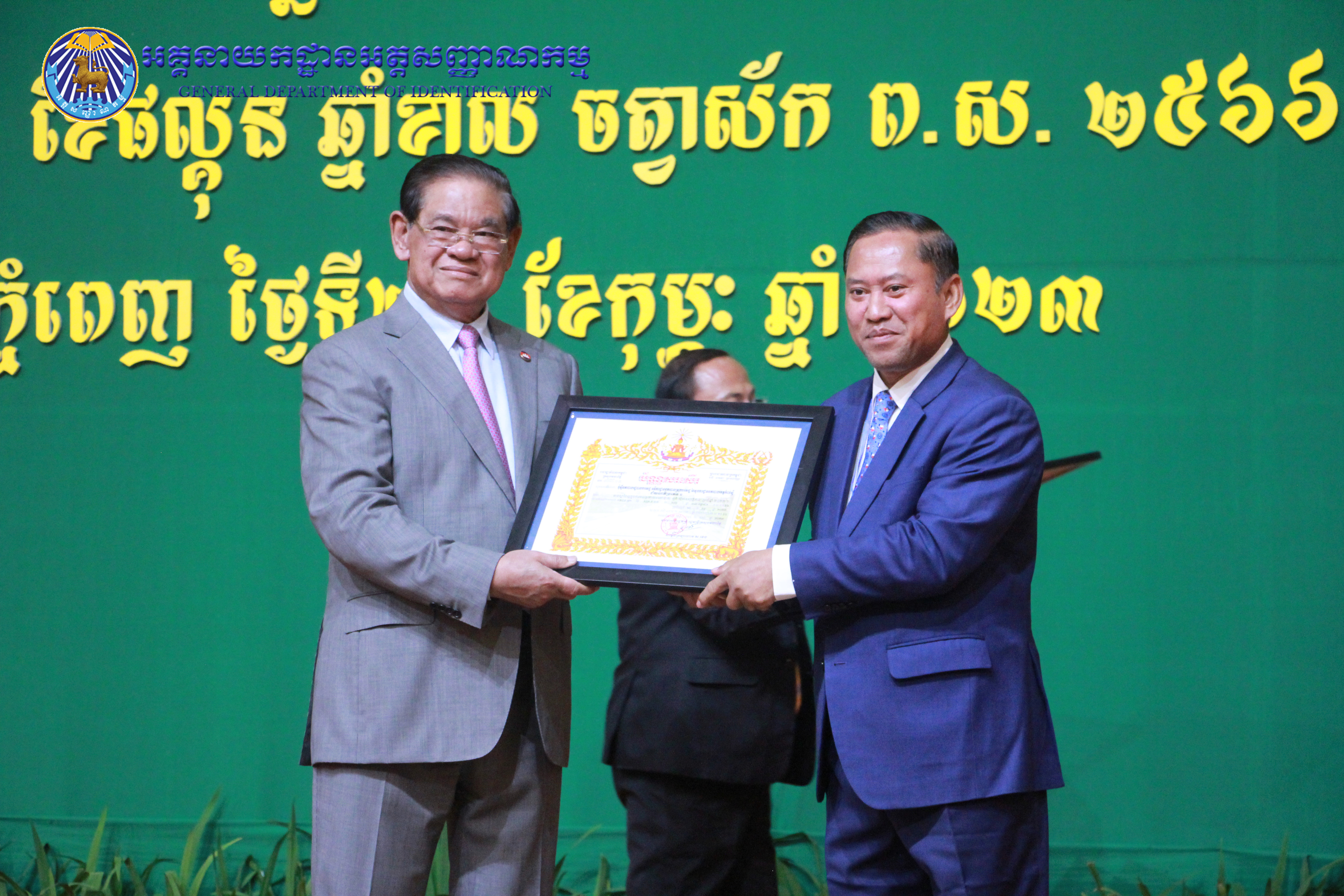 រាជធានីភ្នំពេញ៖ នៅព្រឹកថ្ងៃព្រហស្បតិ៍ ៤កើត ខែផល្គុន ឆ្នាំខាល ចត្វាស័ក ព.ស ២៥៦៦ ត្រូវនឹងថ្ងៃទី២៣ ខែកុម្ភៈ ឆ្នាំ២០២៣ នៅសាលប្រជុំសណ្ឋាគារសុខាភ្នំពេញ ឯកឧត្តម នាយឧត្តមសេនីយ៍ កង សុខន អគ្គនាយក នៃអគ្គនាយកដ្ឋានអត្តសញ្ញាណកម្ម អមដំណើរដោយ ឯកឧត្តម លោកជំទាវ អគ្គនាយករង និងថ្នាក់ដឹកនាំចំណុះអគ្គនាយកដ្ឋាន បានអញ្ជើញចូលរួមក្នុងពិធីបូកសរុបលទ្ធផល នៃអង្គសន្និបាតត្រួតពិនិត្យលទ្ធផលការងារឆ្នាំ២០២២ និងផ្តល់អនុសាសន៍ផ្តាំផ្ញើលើកទិសដៅការងារជូនដល់ថ្នាក់ដឹកនាំក្រសួងមហាផ្ទៃ សម្រាប់អនុវត្តបន្តក្នុងឆ្នាំ២០២៣ ក្រោមអធិបតីភាពដ៏ខ្ពង់ខ្ពស់ សម្តេចក្រឡាហោម ស ខេង ឧបនាយករដ្ឋមន្រ្តី រដ្ឋមន្រ្តីក្រសួងមហាផ្ទៃ។