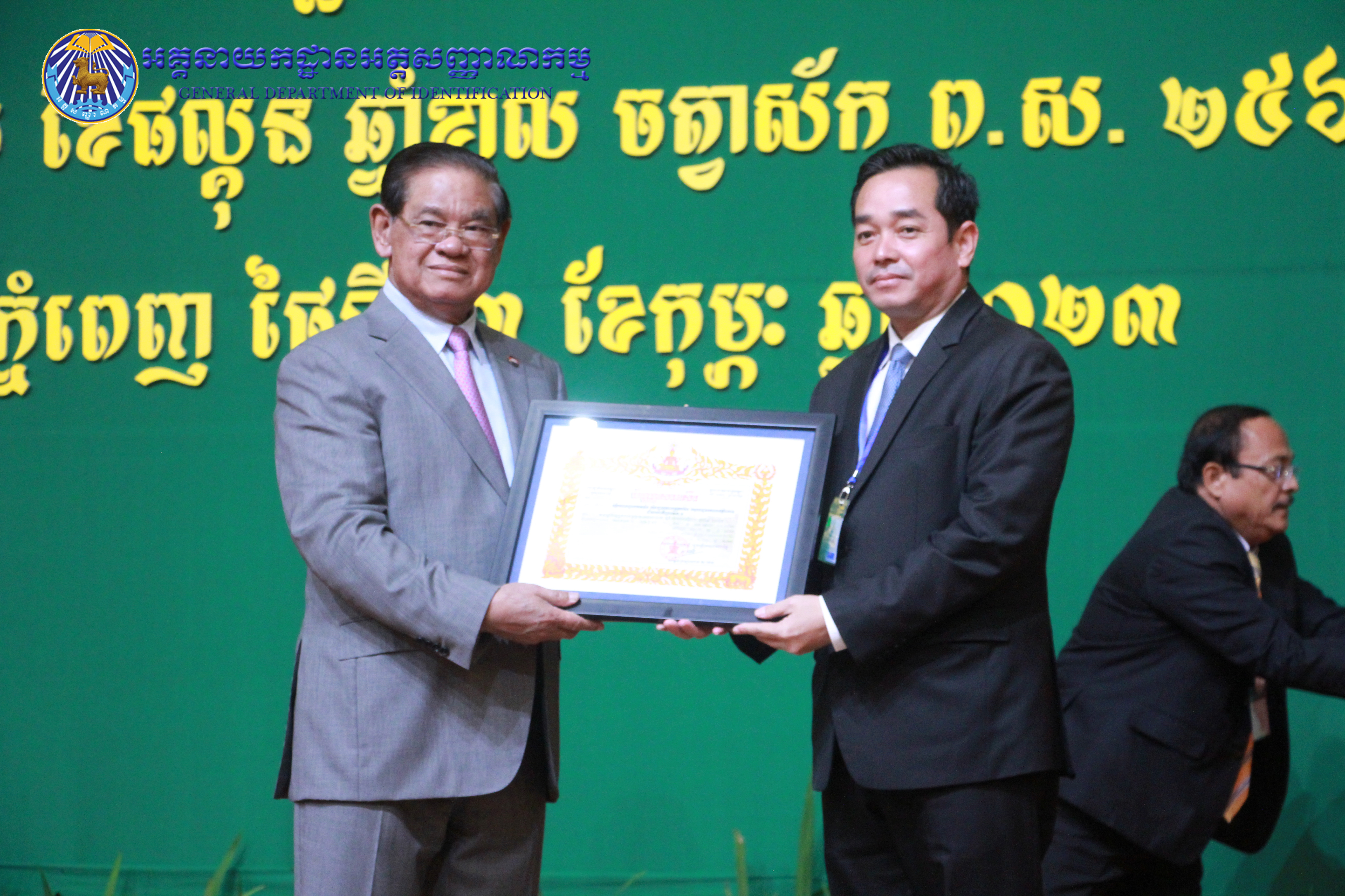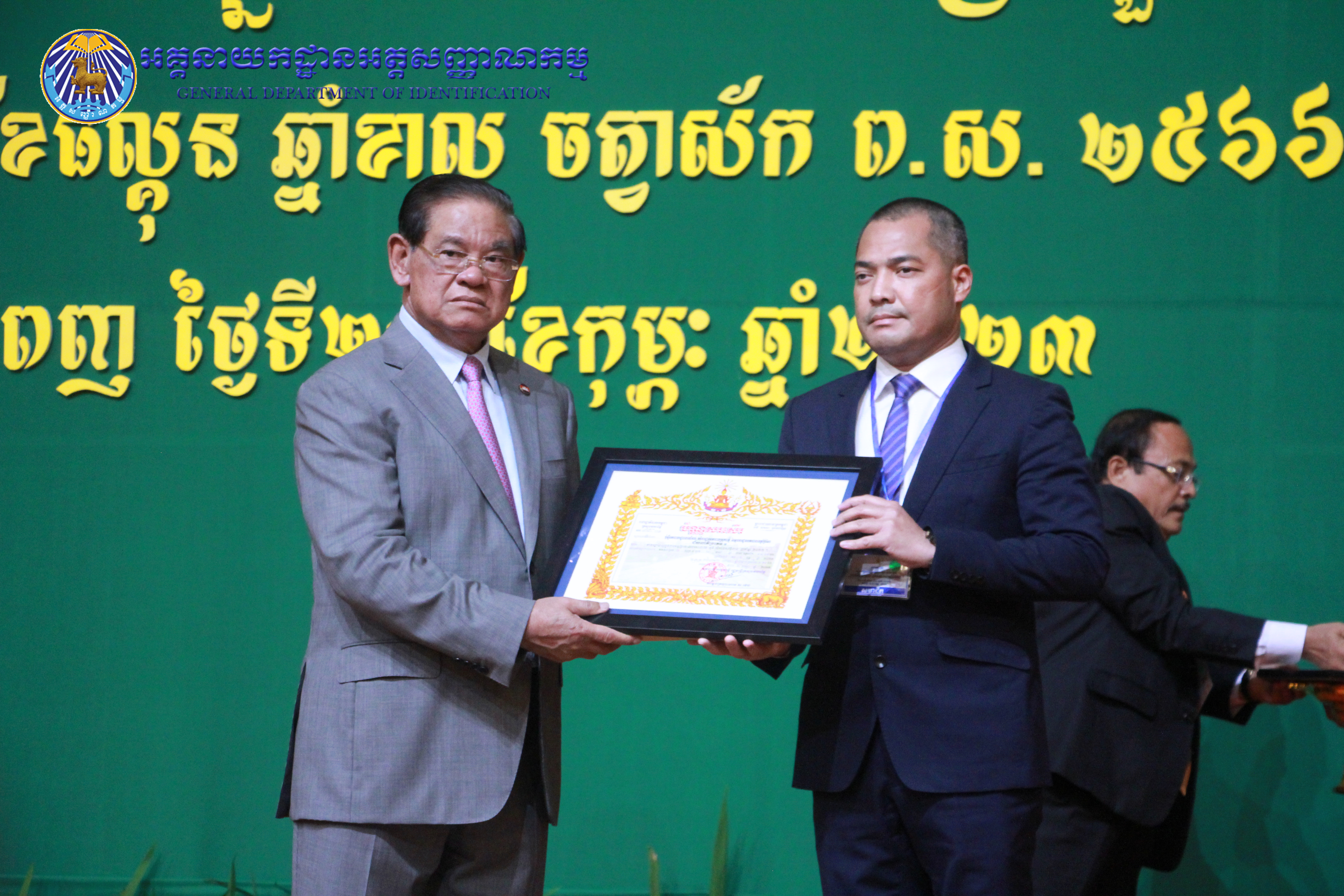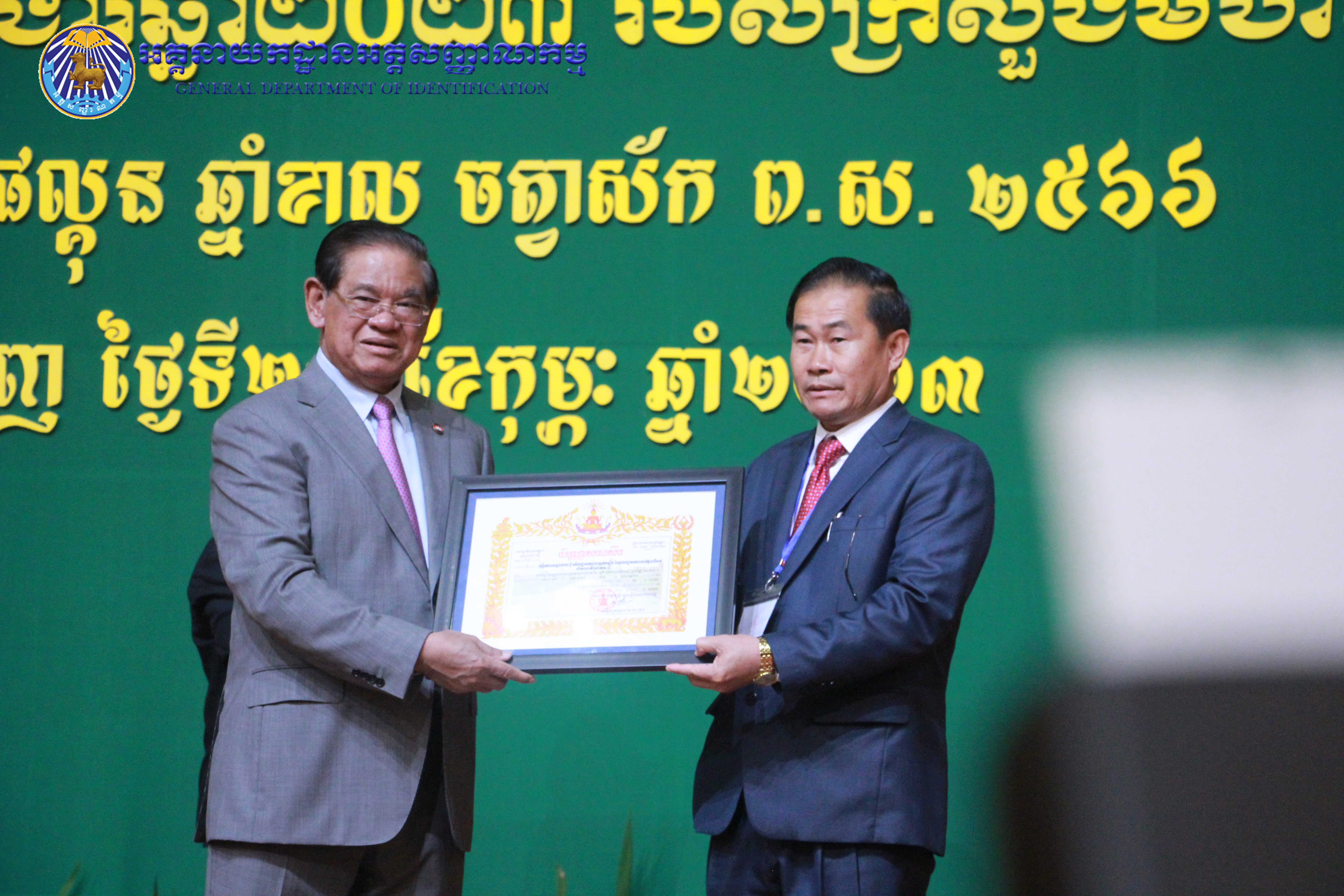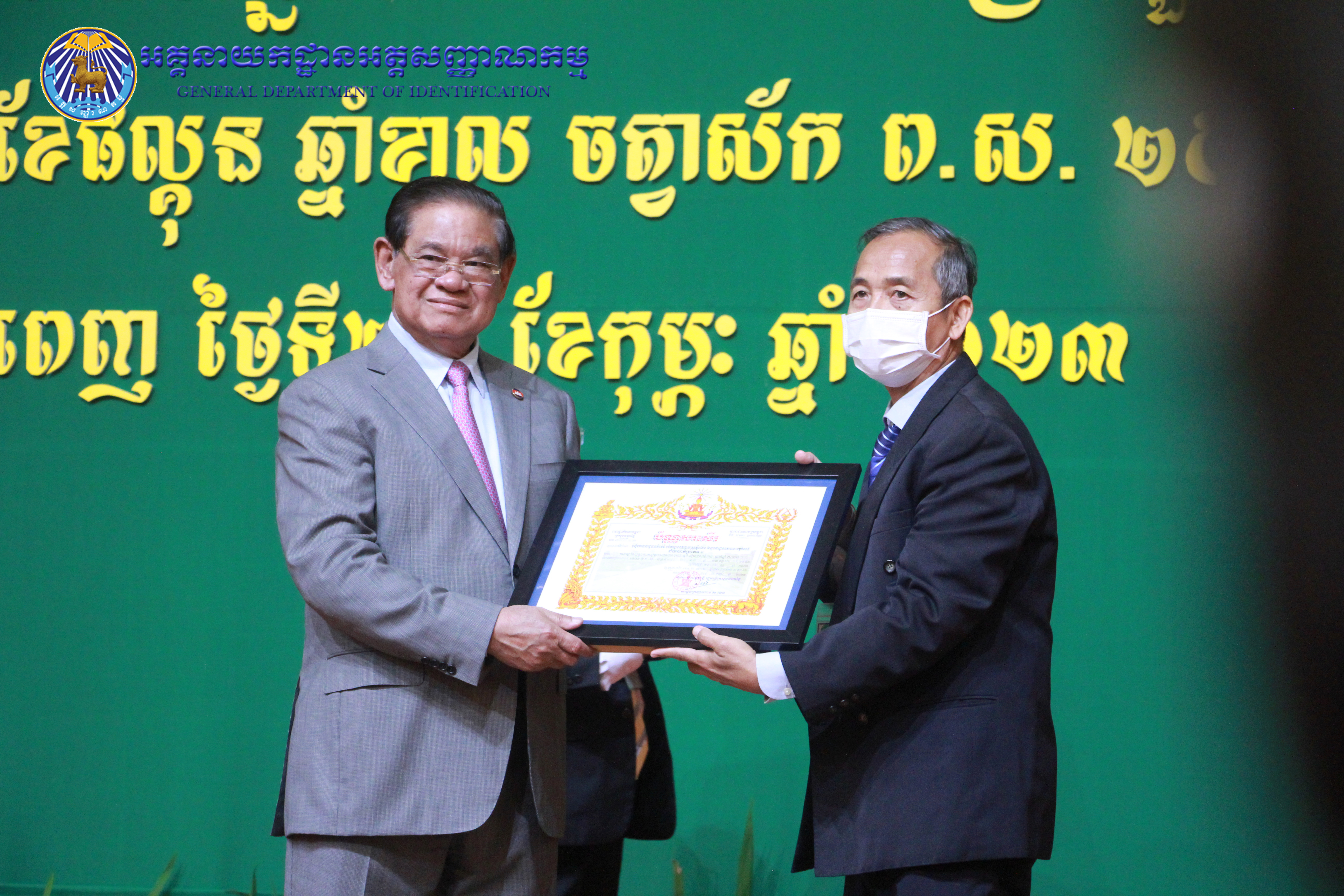រាជធានីភ្នំពេញ៖ នៅព្រឹកថ្ងៃព្រហស្បតិ៍ ៤កើត ខែផល្គុន ឆ្នាំខាល ចត្វាស័ក ព.ស ២៥៦៦ ត្រូវនឹងថ្ងៃទី២៣ ខែកុម្ភៈ ឆ្នាំ២០២៣ នៅសាលប្រជុំសណ្ឋាគារសុខាភ្នំពេញ ឯកឧត្តម នាយឧត្តមសេនីយ៍ កង សុខន អគ្គនាយក នៃអគ្គនាយកដ្ឋានអត្តសញ្ញាណកម្ម អមដំណើរដោយ ឯកឧត្តម លោកជំទាវ អគ្គនាយករង និងថ្នាក់ដឹកនាំចំណុះអគ្គនាយកដ្ឋាន បានអញ្ជើញចូលរួមក្នុងពិធីបូកសរុបលទ្ធផល នៃអង្គសន្និបាតត្រួតពិនិត្យលទ្ធផលការងារឆ្នាំ២០២២ និងផ្តល់អនុសាសន៍ផ្តាំផ្ញើលើកទិសដៅការងារជូនដល់ថ្នាក់ដឹកនាំក្រសួងមហាផ្ទៃ សម្រាប់អនុវត្តបន្តក្នុងឆ្នាំ២០២៣ ក្រោមអធិបតីភាពដ៏ខ្ពង់ខ្ពស់ សម្តេចក្រឡាហោម ស ខេង ឧបនាយករដ្ឋមន្រ្តី រដ្ឋមន្រ្តីក្រសួងមហាផ្ទៃ។