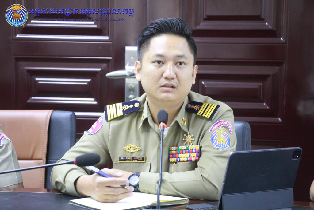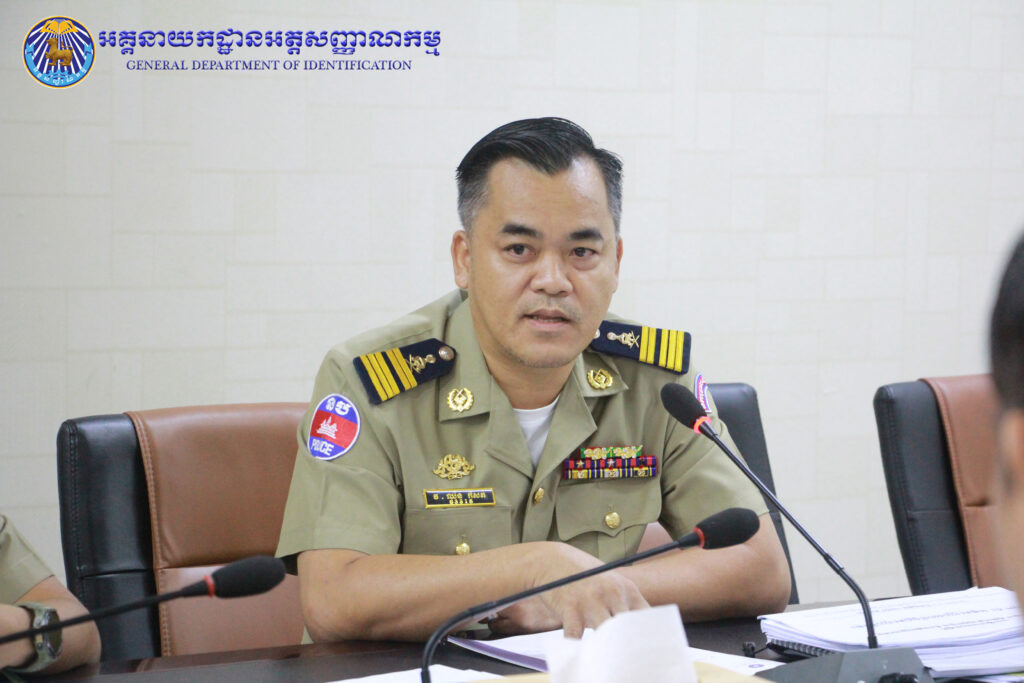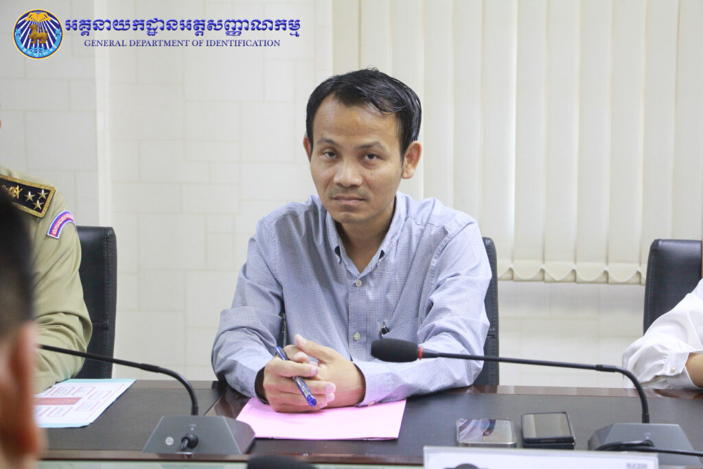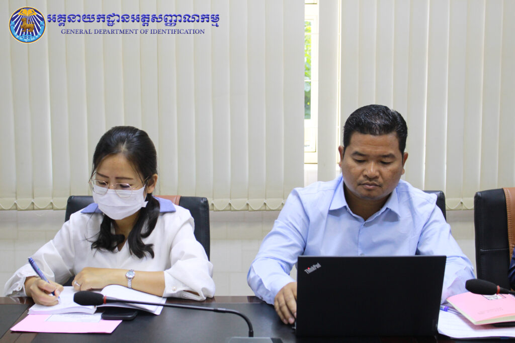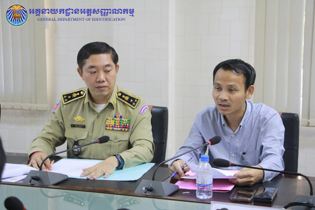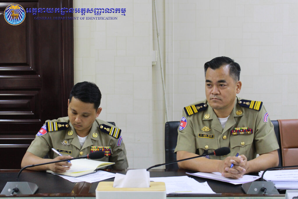 អគ្គនាយកដ្ឋានអត្តសញ្ញាណកម្ម៖ ដោយទទួលបាននូវគោលការណ៍ណែនាំរបស់ ឯកឧត្តម ឧត្តមសេនីយ៍ឯក បណ្ឌិត តុប នេត អគ្គនាយក នៃអគ្គនាយកដ្ឋានអត្តសញ្ញាណកម្ម នាព្រឹកថ្ងៃពុធ ៦កើត ខែភទ្របទ ឆ្នាំថោះ បញ្ចស័ក ព.ស. ២៥៦៧ ត្រូវនឹងថ្ងៃទី២០ ខែកញ្ញា ឆ្នាំ២០២៣ ឯកឧត្តម ឧត្តមសេនីយ៍ឯក សាយ ម៉េងឈាង អគ្គនាយករង និងជាប្រធានក្រុមប្រចាំការសេវាកម្មអត្តសញ្ញាណកម្ម និងប្រតិកម្មរហ័ស បានអញ្ជើញដឹកនាំកិច្ចប្រជុំផ្ទៃក្នុងជាមួយនាយកដ្ឋានជំនាញពាក់ព័ន្ធ ដើម្បីពិនិត្យ រៀបចំឯកសារសៀវភៅ ស្តីពីការផ្តល់សេវាអត្តសញ្ញាណកម្ម និងត្រៀមរៀបចំជា Video Clips ក៏ដូចជាខិត្តប័ណ្ណ សម្រាប់ផ្សព្វផ្សាយជូនប្រជាពលរដ្ឋឱ្យបានយល់ដឹងទូលំទូលាយ។