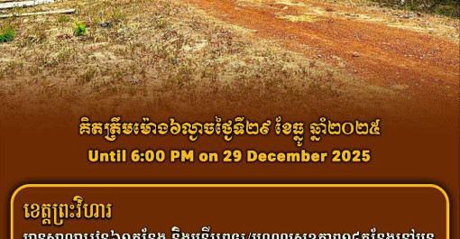 ខេត្តព្រះវិហារ មានសាលារៀន៦១កន្លែង និងមន្ទីរពេទ្យ/មណ្ឌលសុខភាព១៤កន្លែងនៅបន្តបិទផ្អាក ខណៈរដ្ឋបាលនៅថ្នាក់ស្រុក១ និងឃុំចំនួន៦ បានដំណើរការឡើងវិញ។...
