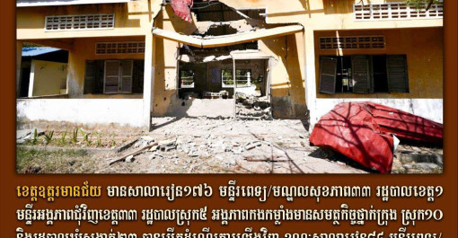 គិតពីម៉ោង៦ល្ងាចថ្ងៃទី៤ ដល់ម៉ោង៦ល្ងាច ថ្ងៃទី៥ ខែមករា ឆ្នាំ២០២៦ ខេត្តឧត្តរមានជ័យ មានសាលារៀន១៧៦ មន្ទីរពេទ្យ/មណ្ឌលសុខភាព៣៣ រដ្ឋបាលខេត្ត១ មន្...