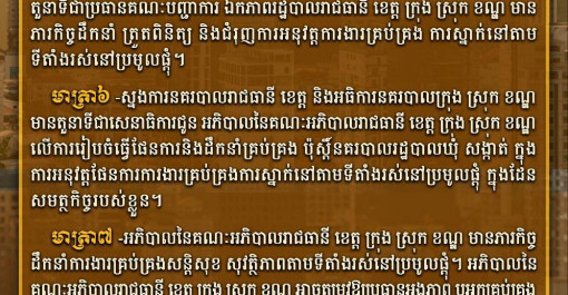 អនុក្រឹត្យ ស្តីពី ការគ្រប់គ្រងសន្តិសុខសុវត្ថិភាពតាមទីតាំងរស់នៅប្រមូលផ្តុំ ..... រៀបចំដោយក្រុមអ្នកនាំពាក្យក្រសួងមហាផ្ទៃ