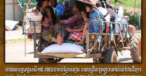 មានពលរដ្ឋភៀសសឹក៥.៧៥៤នាក់បន្ថែមទៀត បានបន្តវិលត្រឡប់ទៅលំនៅឋានវិញ។ ដូច្នេះ ក្នុងចំណោមពលរដ្ឋភៀសសឹកសរុបជាង៦សែន៤ម៉ឺននាក់ មានប្រមាណ៤សែន៨ម៉ឺន...