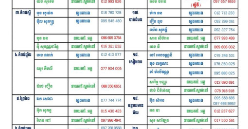 -សូមជូនបញ្ជីឈ្មោះ លេខទំនាក់ទំនង ស្នងការរងទទួលផែនការងារអត្តសញ្ញាណកម្ម នាយការិយាល័យអត្តសញ្ញាណបណ្ណសញ្ជាតិខ្មែរ និងនាយការិយាល័យគ្រប់គ្រងការស្នាក់នៅ នៃស្...