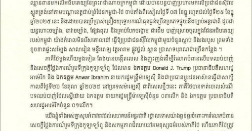 ញត្តិថ្កោលទោសរបស់ក្រសួងមហាផ្ទៃ ចំពោះសង្គ្រាមឈ្លានពានរបស់ថៃ មកលើអធិបតេយ្យនៃព្រះរាជាណាចក្រកម្ពុជា! Statement of Condemnation on Thailand's War of...