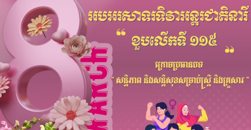 អបអរសាទរទិវាអន្តរជាតិនារី ៨មីនា ខួបលើកទី១១៥ ក្រោមប្រធានបទ “ សន្តិភាព និងសន្តិសុខសម្រាប់ស្រ្តី និងគ្រួសារ ”។