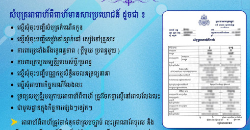 សារប្រយោជន៍ទទួលបាន នៃការចុះសំបុត្រអាពាហ៍ពិពាហ៍។ ឆាណែលTelegram អគ្គនាយកដ្ឋានអត្តសញ្ញាណកម្ម -Join Telegram https://t.me/GDI_service_news -Websi...
