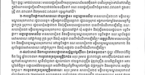 [English below] មានពលរដ្ឋភៀសសឹក៧.៨៦៦នាក់បន្ថែមទៀត បានបន្តវិលត្រឡប់ទៅលំនៅឋានវិញ។ ដូច្នេះ ក្នុងចំណោមពលរដ្ឋភៀសសឹកសរុបជាង៦សែន៤ម៉ឺននាក់ មានប...