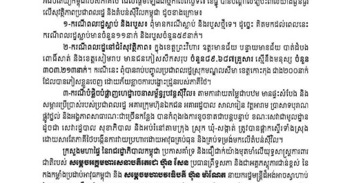 ក្រសួងមហាផ្ទៃ នៃរាជរដ្ឋាភិបាលកម្ពុជា ចេញសេចក្ដីប្រកាសព័ត៌មាន ស្ដីពី ផលប៉ះពាល់លើប្រជាពលរដ្ឋ និងតំបន់ស៊ីវិលកម្ពុជា ពីអំពើឈ្លានពានរបស់ភាគីថៃ ចាប់ពីម៉...