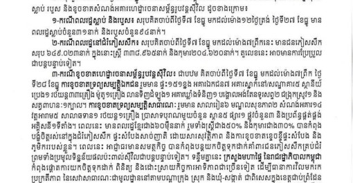 ក្រសួងមហាផ្ទៃ នៃរាជរដ្ឋាភិបាលកម្ពុជា ចេញសេចក្ដីប្រកាសព័ត៌មាន ស្ដីពី ស្ថានភាពក្រោយបទឈប់បាញ់ គិតពីម៉ោង៧ព្រឹក ដល់ម៉ោង១រសៀល ថ្ងៃទី២៨ ខែធ្ន...