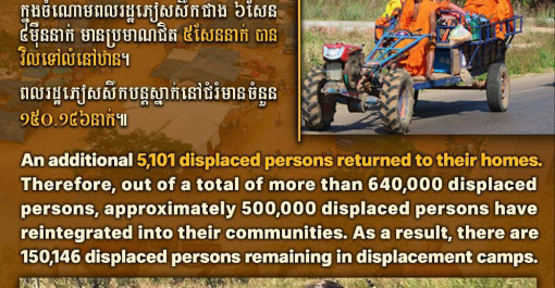 គិតពីម៉ោង៦ព្រឹក ថ្ងៃទី១៣ ដល់ម៉ោង៦ព្រឹក ថ្ងៃទី១៤ ខែមករា ឆ្នាំ២០២៦ មានពលរដ្ឋភៀសសឹក៥.១០១នាក់បន្ថែមទៀត បានបន្តវិលទៅលំនៅឋានវិញ។ ក្នុងចំណោមពលរដ្ឋភៀសសឹក...