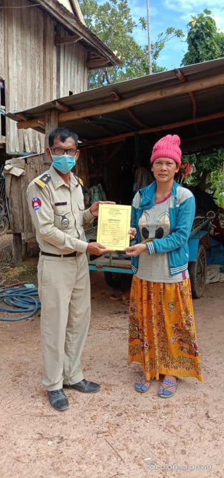 ខេត្តកំពង់ចាម៖ នៅថ្ងៃសៅរ៍ ១០រោច ខែភទ្របទ ឆ្នាំជូត ទោស័ក ព.ស ២៥៦៤ ត្រូវនឹងថ្ងៃទី១២ ខែកញ្ញា ឆ្នាំ២០២០ សកម្មភាពមន្រ្តី នៃស្នងការដ្ឋាននគរបាលខេត្តកំពង់ចាម បានដឹកនាំកម្លាំងផ្នែកស្ថិតិប្រជាពលរដ្ឋ ចុះប្រគល់សៀវភៅស្នាក់នៅ(ក២) ជូនដល់ប្រជាពលរដ្ឋ។