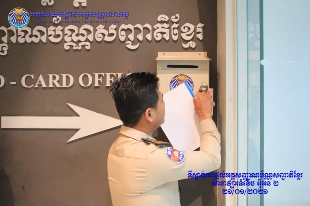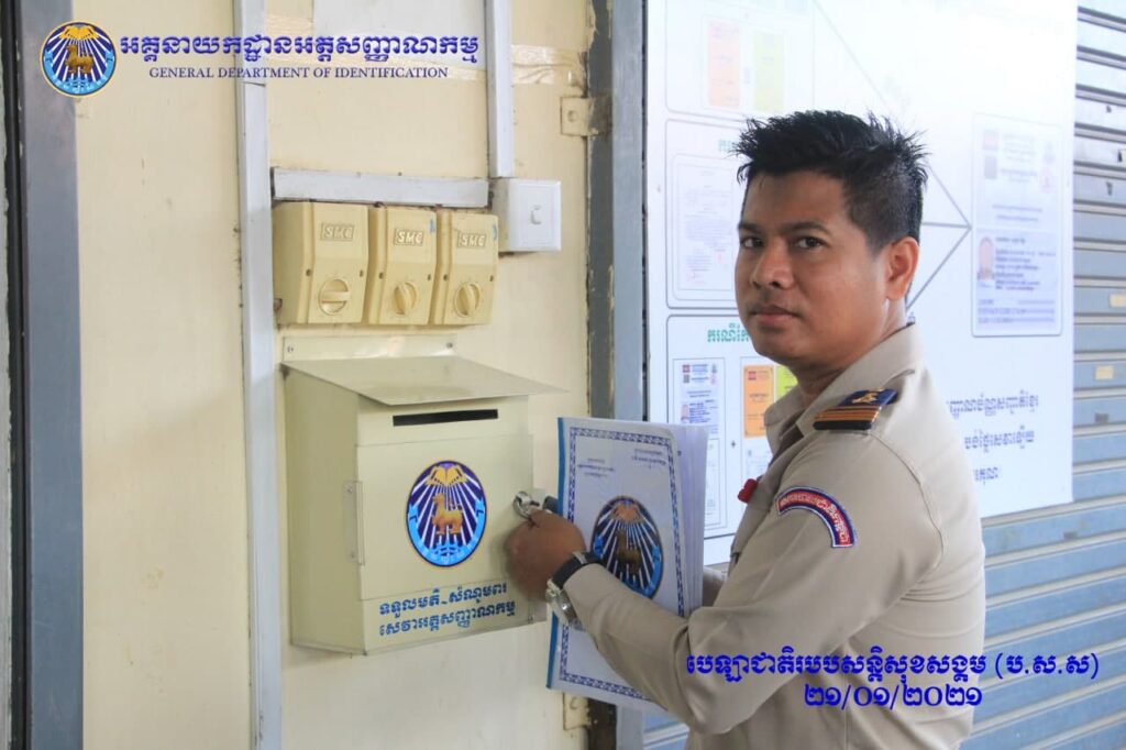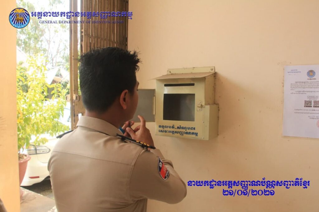 ក្រុមការងារប្រអប់សំបុត្រទទួលមតិ សំណូមពរប្រជាពលរដ្ឋ៖ នៅក្នុងសប្តាហ៍នេះ ឯកឧត្តម ឧត្តមសេនីយ៍ឯក សាយ ម៉េងឈាង អគ្គនាយករង និងជាប្រធានក្រុមការងារបានដឹកនាំ និងចាត់តាំងក្រុមការងារចុះបើកប្រអប់សំបុត្រ ទាំងអស់ដែលបានដាក់នៅតាមបណ្តាទីតាំងផ្តល់សេវាអត្តសញ្ញាណកម្ម។