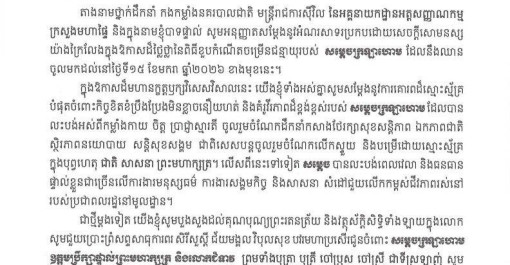 ឯកឧត្តម ឧត្តមសេនីយ៍ឯក បណ្ឌិត តុប នេត អគ្គនាយក និងថ្នាក់ដឹកនាំ មន្ត្រីនគរបាលជាតិ ព្រមទាំងមន្រ្តីរាជការស៊ីវិល នៃអគ្គនាយកដ្ឋានអត្តសញ្ញាណកម្ម គោរពផ្ញើសារជ...